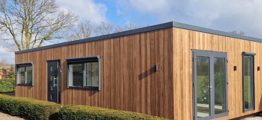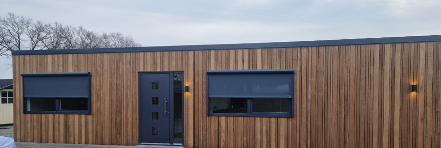 We leverden een luxe mantelzorgwoning. Deze bestaat uit vier units en zijn zorgvuldig gebouwd en afgewerkt. Waarbij veel aandacht is besteed aan zowel de binnen- als buitenkant van de woning. De buitenzijde van de units is afgewerkt met thermische gemodificeerd Fraké met een blinde bevestiging. De kozijnen zijn in de kleur antraciet en voorzien van een screen. Binnen in de woning zijn de wanden voorzien van vliesbehang en schilderwerk. De vloer is voorzien van een PVC strokenvloer met een houtlook. Allemaal naar wens van de eigenaresse.